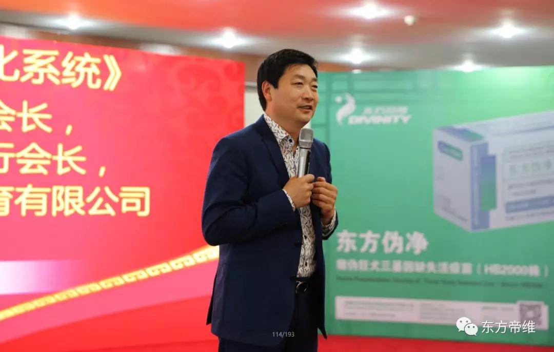 接下来在主持人做了简短而热情的开场介绍之后,安徽东方帝维总经理刘渝先生首先上台讲话。刘渝总经理从多角度阐述分析了东方帝维《疫苗 匠心智造》的优势及坚持,为大家讲解了“东方福”这一产品的独到之处,刘总深刻的分析让台下合作伙伴频频点头赞同。刘总还为大家简单的介绍了东方帝维疫苗的生产细节和未来的发展趋势,获得了场下的阵阵掌声。